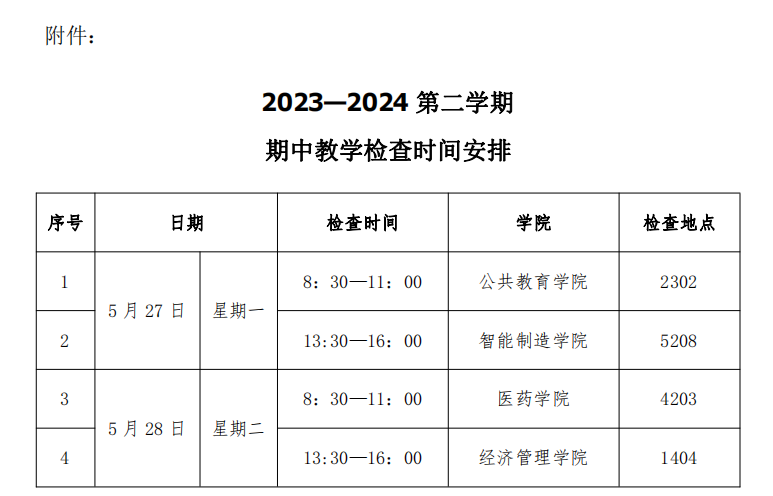 附件:2023-2024学年第二学期期中教学检查时间安排。