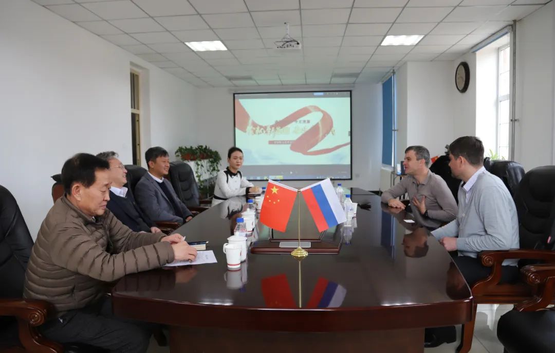 柳森向瓦西里和阿尔乔姆介绍了学校的发展历史、专业特色和国际合作等方面的成果。柳森表示,学校一直以来都非常重视国际合作与交流,期待与俄罗斯高校开展更多实质性的合作。座谈交流会就我校在俄罗斯设立办事处并聘请瓦西里先生、阿尔乔姆先生为办事处主任达成了一致。
