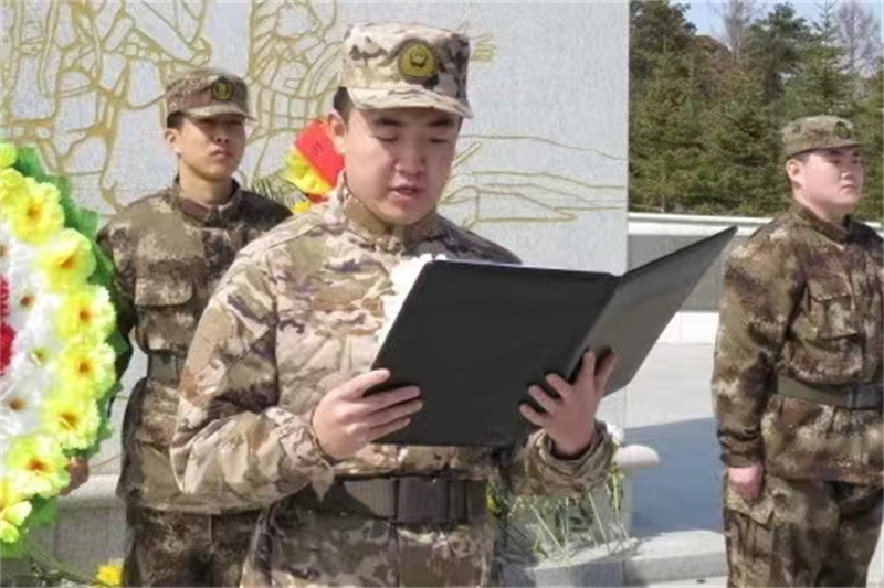 退役大学生代表高贺发言,他表示,要积极参与到社会公益事业中去,用自己的实际行动去践行先烈们的精神,为社会的进步和发展贡献自己的一份力量。