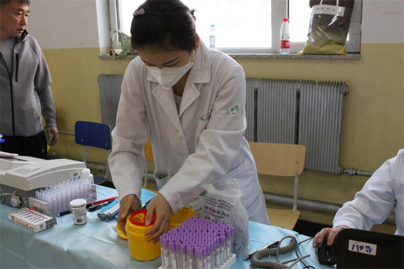 同学们在医务室和校学生会工作人员的引导下,依次进行了信息登记、血液类型检验、静脉采血等环节。同学们纷纷挽起袖管,坐在采血椅上献出“青春热血”,真正将奉献做到了内化于心、外化于行。