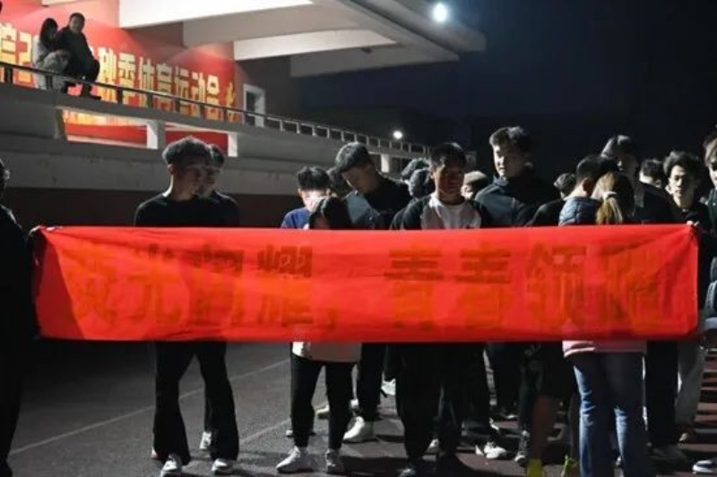 荧光闪闪,每一个夜跑的人,都是夜空中最闪亮的星。活动开始,参与者各手持荧光棒,成群结队、有序而自由地奔跑。跑道上荧光熠熠、星光点点,同学们对运动的热情,在这个夜晚被充分释放和点燃,少年不灭的意志就是点点星火,照亮每一份热爱与执着,奔跑的脚步永不停止。