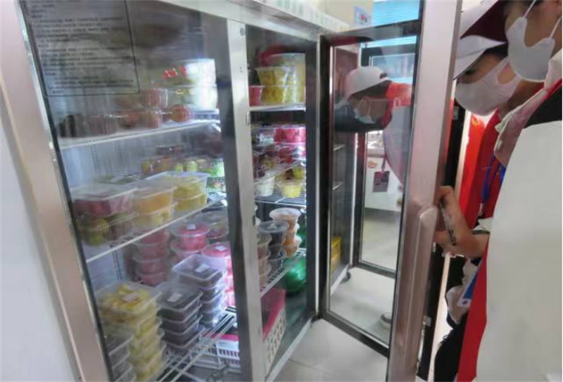 首先,我们来到了食堂。在食堂经理的带领下,对各个档口的操作间及其后厨开展了严密的检查。重点检查了食堂后厨的卫生环境,生熟食的摆放,食材的新鲜程度,用过的食品是否及时封口,以及冰柜的卫生情况,确保检查的全面性和严密性。