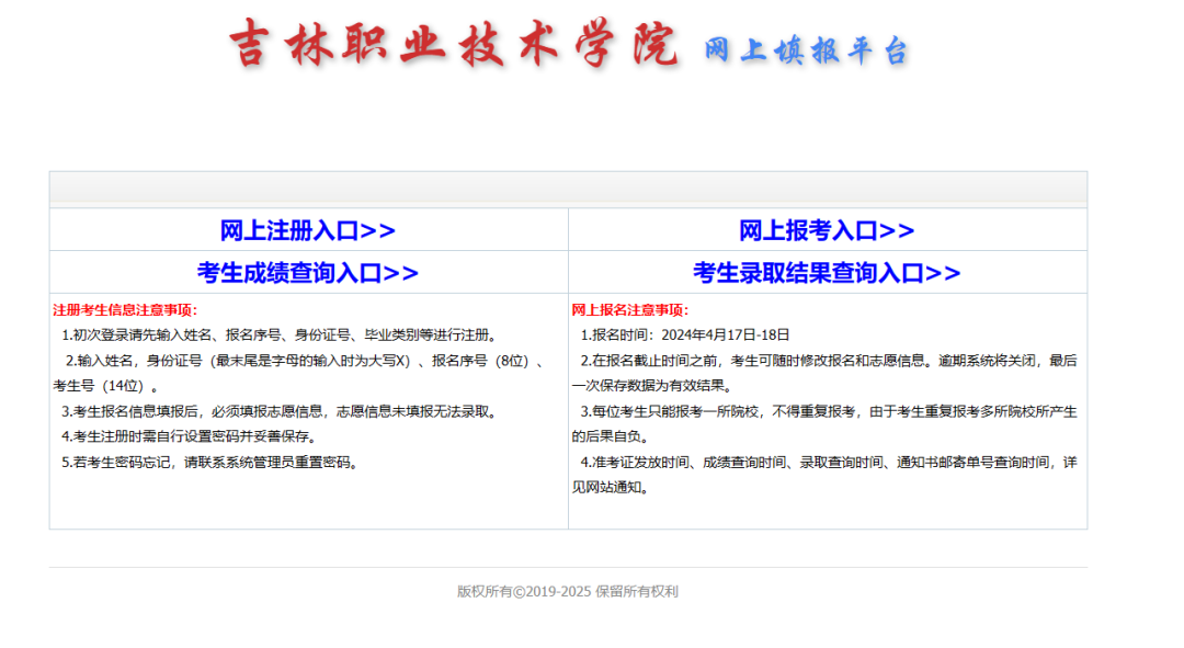 注:所有考生需要先点击左侧【网上注册入口】,注册个人信息后,再点击右侧【网上报考入口】,进行志愿填报。
