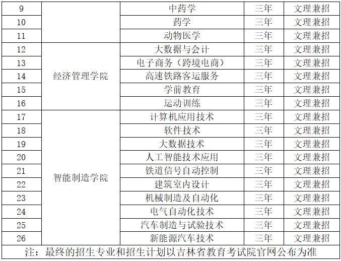 2.考生需参加吉林省高考统一体检,身体健康,并符合教育部规定相关专业的身体要求和《普通高等学校招生体检工作指导意见》要求。