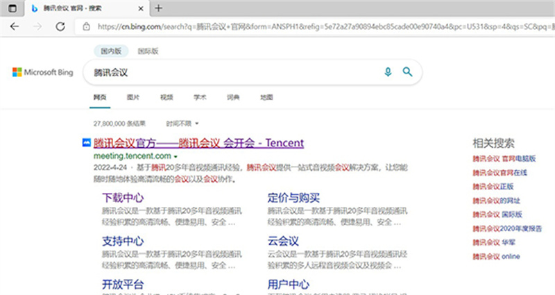 1.在网上搜索“腾讯会议”,找到其官方网站,如下图: