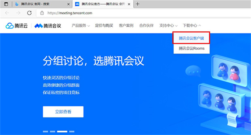 2.在其官方网站上进入“下载中心”,选择“腾讯会议客户端”,如下图: