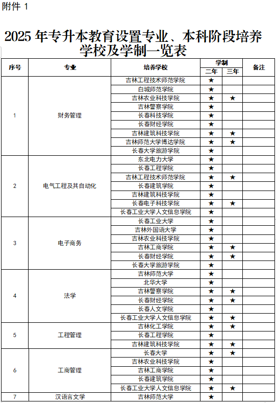 按照《2025年专升本教育设置专业、本科阶段培养学校及学制一览表》(见附件1),确定培养学校和专业。