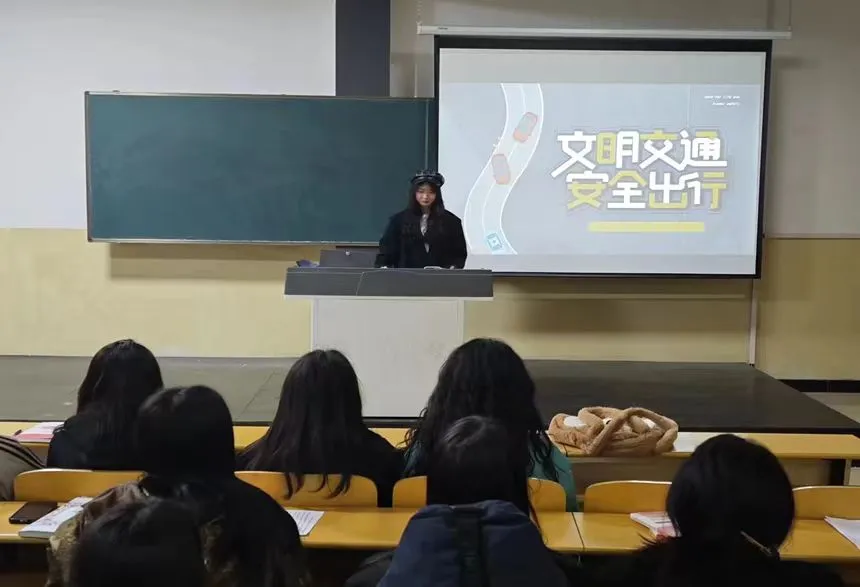 主讲人向同学们普及交通知识,列举《道路交通安全法》中相关条例以及实施条例的具体内容,向同学们强调了交通安全的重要性,使同学们了解更多交通安全知识,提升道路安全意识。同学们庄严宣誓,提倡遵守交规、尊重生命、牢记公德、文明交通的行为,争做遵纪守法的青年。