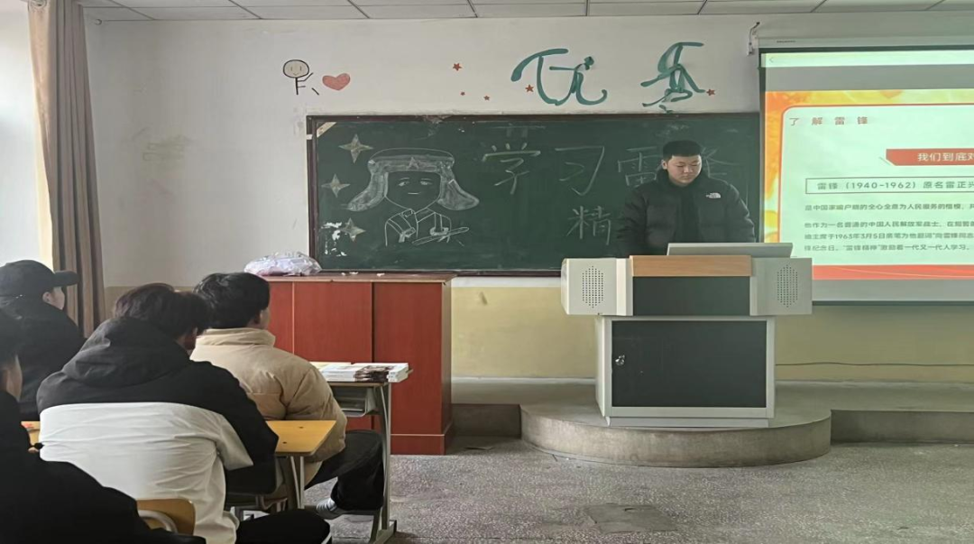我校各团支部自行开展主题团会,通过视频播放、课件展示、唱歌曲《学习雷锋好榜样》、看雷锋电影等多种方式,展示雷锋短暂而又精彩的一生。一个个真实的故事生动阐释了雷锋热爱党、热爱祖国、热爱社会主义的崇高理想和坚定信念。服务人民、助人为乐的奉献精神;干一行、爱一行、专一行、精一行的敬业精神;锐意进取、自强不息的创新精神;艰苦奋斗、勤俭节约的创业精神。