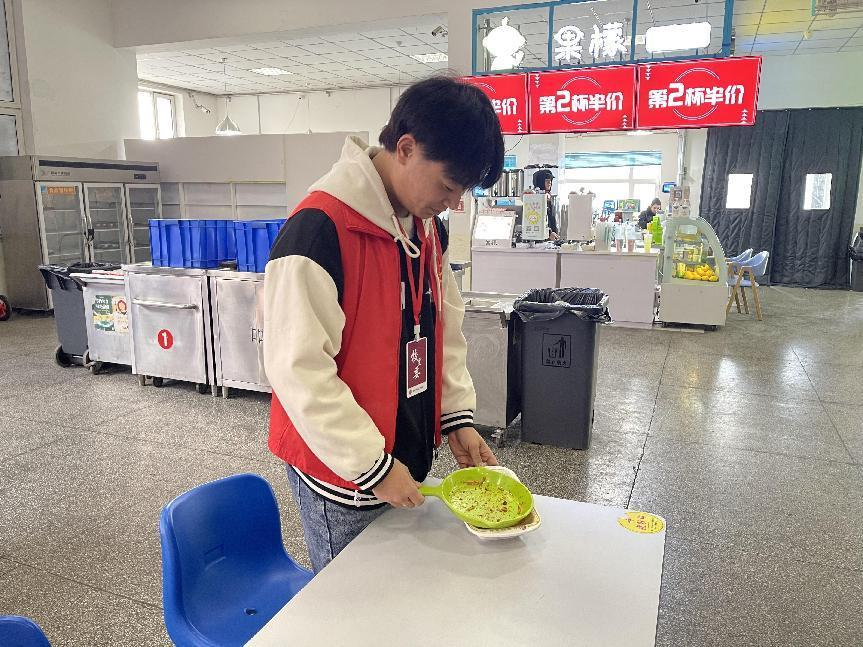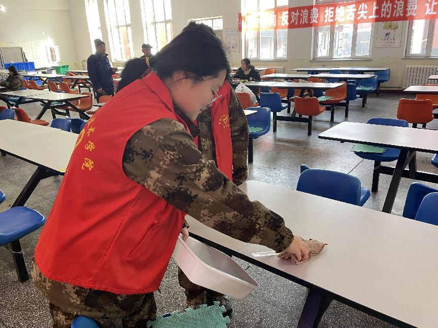 身穿红马甲的志愿者们各司其职,共同为学校食堂营造干净整洁的环境。认真仔细擦抹餐桌、座椅、清扫垃圾,为同学们提供良好的就餐环境,志愿者们通过亲身体验深刻体会到食堂工作人员的辛苦。