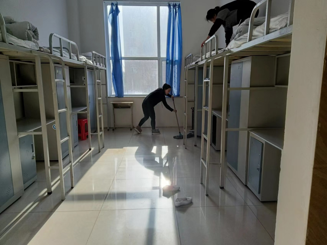 环境整洁很舒心。为在新学期给师生创造一个良好的学习生活环境,工作人员积极开展校园卫生环境整治及消杀、垃圾清运、校园绿化美化工作,进一步提高卫生保洁质量,使新学期的校园环境更加整洁、美丽。对宿舍内水、电、消防器材、自助洗衣机、售卖机等设备进行全面检查;对各宿舍大厅、值班室、楼道等公共区域进行了全面的清扫;做好了楼宇通风、环境卫生、清洁消毒等工作,保证返校学生舒心入住。