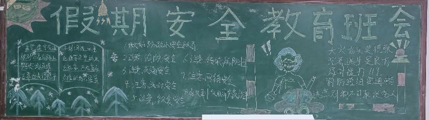在此次班会中,不仅丰富了同学们的安全知识,同时增强了同学们假期出行的安全防范意识,使学校的假期安全教育和管理工作得到了落实,敲响了学生对假期安全的警钟,为同学们度过一个安全健康的假寒假保驾护航。
