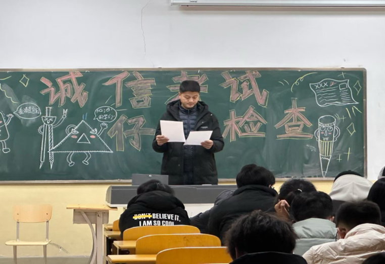 班会中,辅导员带领学生学习学生手册中关于诚信考试的相关内容,指出考场作弊的发生很大部分源于功利心理、侥幸心理等不正确考试心理的影响,为学生敲响警钟。同时为大家讲解期末考试的注意事项,要求同学们诚信考试,呼吁学生充分认识开展诚信教育的重要性和必要性,培养自觉遵守考试纪律、抵制违法违纪行为的良好习惯,自觉维护各类考试的权威性和公信力。
