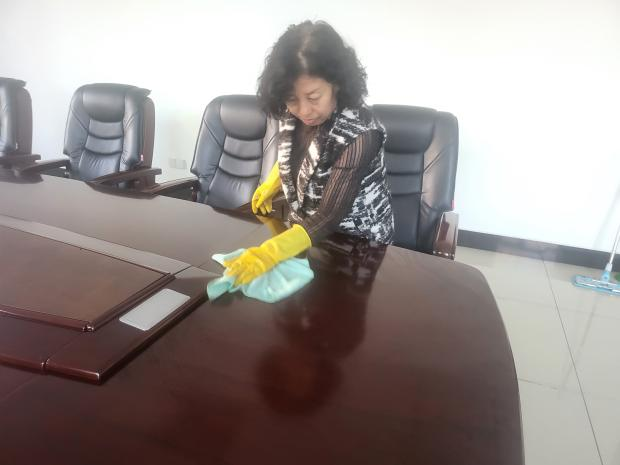 行政楼的保洁任务繁重,更有诸多的卫生难题亟需解决。她克服重重困难,竭尽全力为我们提供一个干净整洁的办公环境。玻璃门窗擦的窗明几净;卫生间一洁如新,没有任何异味;走廊的每个角落一尘不染,像是刚被打扫过一样。晚上经常九点多检查完各个办公室、会议室的安全后,锁好主楼大门才去就寝。印象中的她总是忙忙碌碌,在会议室、卫生间、走廊等,一直以专业的态度和能力,将每一个场所都打扫得干净整洁,没有一刻停歇。虽然她没有化妆品的粉饰,但却成为了我们心目中最美的样子。无私奉献 尽职尽责