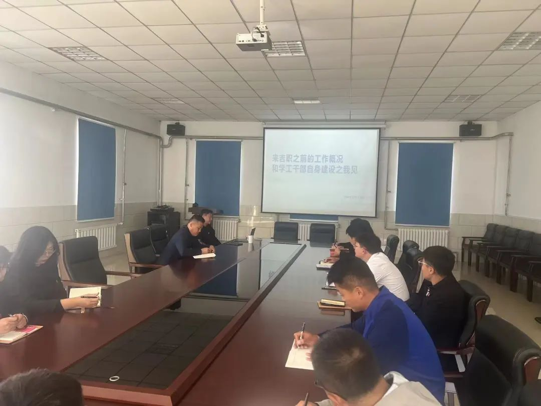 活动中,李可心以《来吉职之前的工作概况和学工干部自身建设之我见》为题,与全体学工部门人员进行了交流。他以多年的工作经验、学习感悟和成长经历引导全体学工人员建立职业信心,做好职业规划,提升职业能力,守好职业道德。鼓励全体人员要做到“知之俞明,行之俞笃”增强理论学习;“学思践悟,知行合一”强化工作能力;“挽弓当挽强,用箭当用长”讲究工作艺术和方法;“领异标新,与时偕行”拓展和创新工作技能;“见贤思齐焉,见不贤而内自省也”提高个人修为;“圣人之本,在乎制度而已”守好规矩制度。李可心的讲解深入浅出,以扎实的理论功底和丰富的事例让与会人员受益匪浅,收获丰硕。