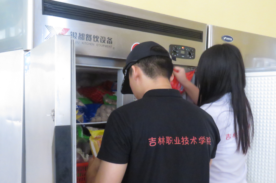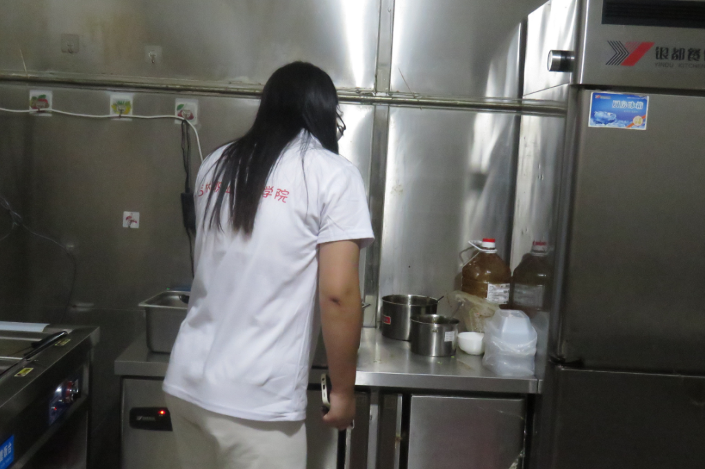 在后勤处和食堂经理的带领下,学生会权益部和生活部成员走进食堂档口内的操作间,对操作间功能分区、食品的保质期、食品新鲜程度、冷藏柜的使用等多个方面展开检查。