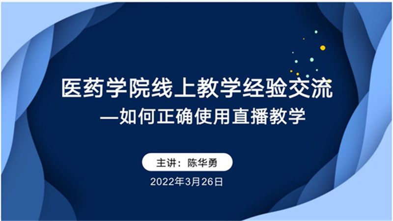 疫情期间,为确保线上线下教学效果等质等效,最大程度利用线上教学平台,保证线上教学环节的完整性,提高教学质量,3月26日,由医药学院督导组专家陈华勇教授通过“腾讯会议”进行线上教学经验分享。