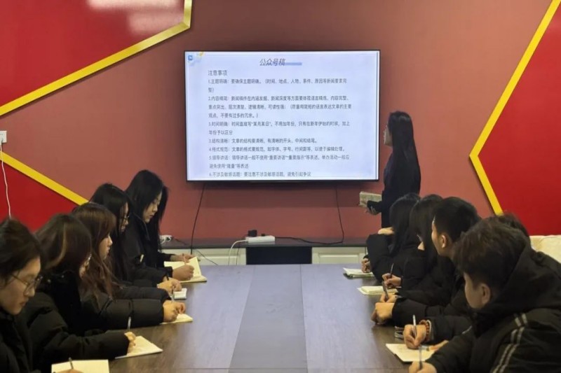 培训伊始,杨颜萁同学着重对比了新闻稿的新版与旧版差异,详细指出新闻稿开头应明确目的,突出新闻事件的重要意义,清晰交代时间、地点、人物等基本要素,且以新闻主体作为第一人称展开叙述,确保文字简洁流畅,能让读者迅速了解事件核心。同时,强调在结尾部分要深刻总结通过此次活动所领悟到的道理与收获,升华新闻主题。