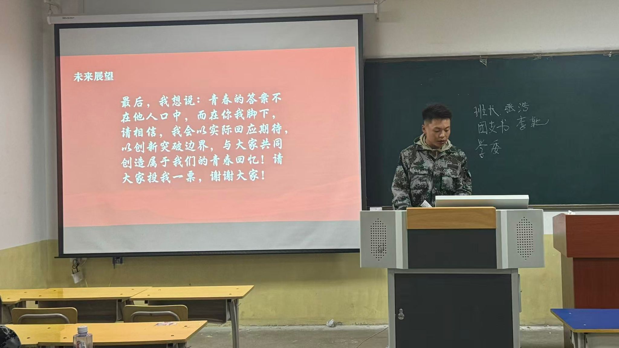 班会伊始,孙畅对于竞选流程、班委岗位设置及具体职责进行详细说明,本次竞选严格遵循“自荐报名、公开演讲、民主投票”三大环节。孙畅鼓励同学们都能勇敢地站上舞台,充分展示自己的能力与独特风采。随后,班委竞选环节正式开始,参选同学依次上台,通过精美的PPT以及生动的演讲,展示了自身的才华与能力,也表达出对班委职责的深刻理解。每一位竞选者都全力以赴,将自己的才华和热情展现得淋漓尽致,他们言辞恳切,赢得了台下阵阵掌声。
