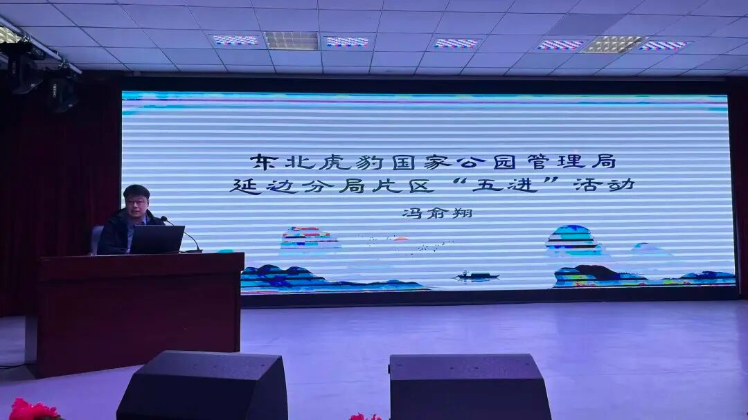活动伊始,冯俞翔专家以“东北虎豹国家公园管理局延边分局片区‘五进’活动”为主题,结合东北虎豹国家公园的生态资源、保护现状及科研成果,用浅显易懂的语言和生动的实例,为人文学院师生揭开了国家公园的神秘面纱。他详尽阐述了东北虎、东北豹等旗舰物种的生存习性、种群恢复过程,以及国家公园在生态修复、社区共建等方面的创新实践,使师生们深刻理解到国家公园在维护生态安全、传承自然文化中的关键作用。