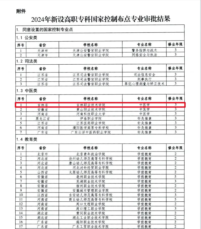(记者 杨晓明)近日,从《教育部关于公布2024年高等职业教育专科专业设置备案和审批结果的通知》(教职成函〔2024〕1号)中获悉,我校申报的中医学专业成功获批。