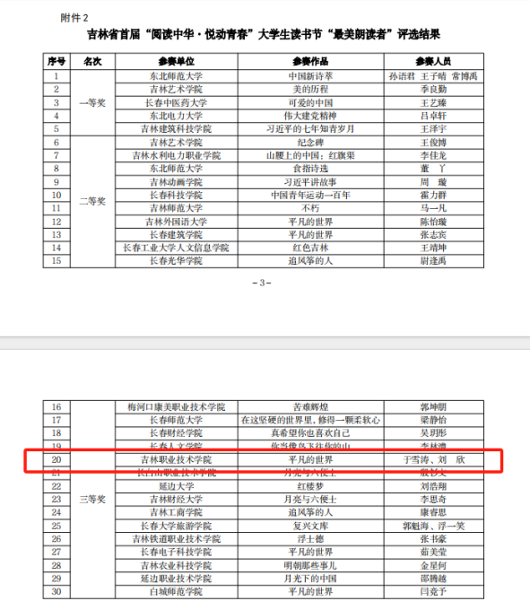 在刚刚结束的吉林省首届“阅读中华·悦动青春”大学生读书节上,我校于雪涛、刘欣同学凭借出色的表现,荣获“最美朗读者”称号。