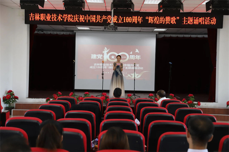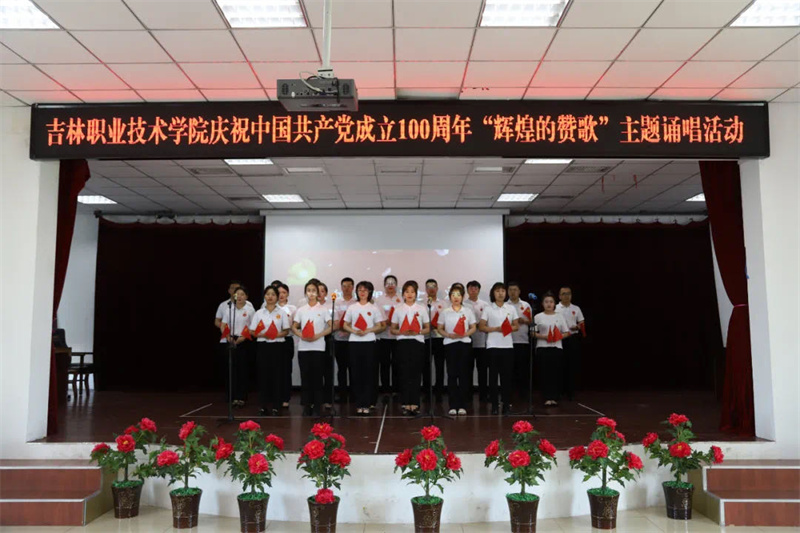 为庆祝中国共产党成立100周年,弘扬爱国主义精神, 丰富教职工文化生活,营造感恩党、听党话、跟党走的浓厚氛围,增强实现中华民族伟大复兴的使命感和责任感,6月30日,学院举办庆祝中国共产党成立100周年“辉煌的赞歌”主题诵唱活动,学院党委书记熊焕章、副校长胡伯龙出席活动,全体教职工党员、师生代表参加,党政办公室副主任仲秋雯主持。
