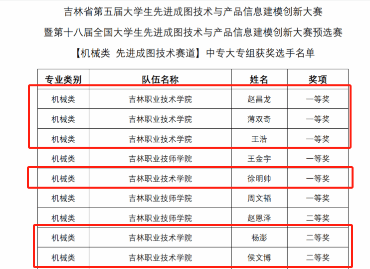 赵昌龙同学凭借精湛技艺斩获机械类成图赛道个人第一名,薄双奇、王浩、徐明帅同学也分别以第二、第三、第五名的优异成绩荣获一等奖。他们用手中的图纸与模型,诠释了 “德能兼修,技高一筹” 的赛事精神,展现出我校学子敢于拼搏、追求卓越的风采。