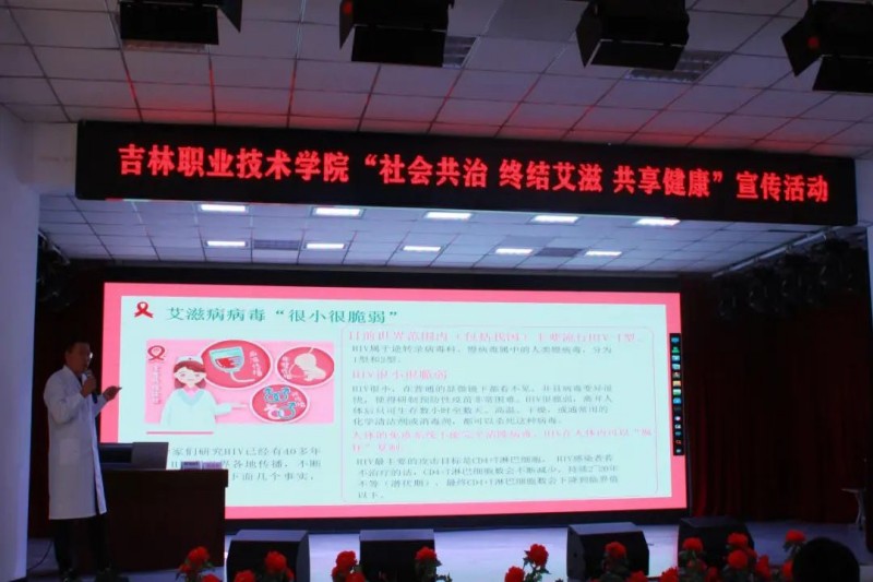 讲座中,吕东为我校大学生详细讲解了艾滋病基础知识,艾滋病的传播途径、艾滋病的症状表现、艾滋病的预防措施、检测与治疗等知识。