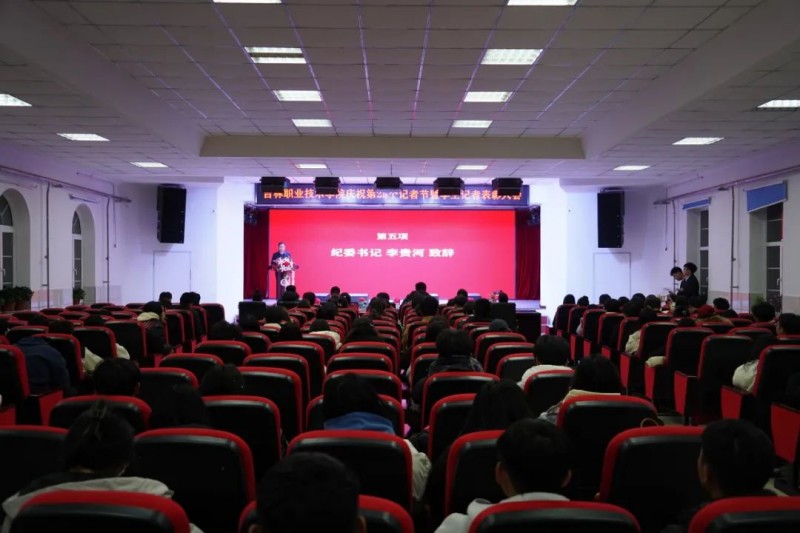 (记者 杨晓明)11月7日晚,我校在办公楼三楼学术报告厅举行庆祝第25个记者节暨优秀学生记者表彰大会。校纪委书记李贵河、党委宣传部部长段世娇、团委书记陈宏亮、就业处副处长吴政珉、智能制造学院学工办负责人王鹏宇、医药学院学工办负责人李泓辉、人文学院学工办负责人孙畅出席大会,党委宣传部全体教师、学校学生记者200余人参加大会。大会由党委宣传部林国娜老师主持。大会在雄壮的国歌声中开始。