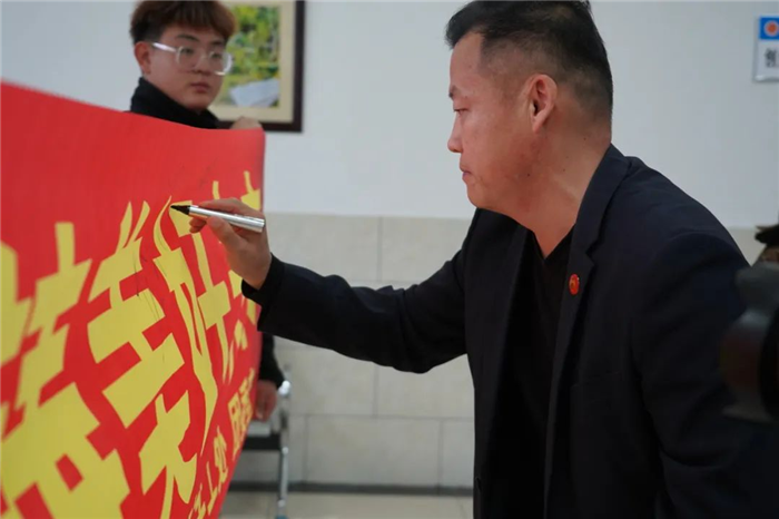 李贵河与学生代表在大屏幕前共同按下“文明修身、青春同行”大学生日常行为规范和文明礼仪教育活动的启动标志。全体参加教育活动启动仪式人员进行了签名。
