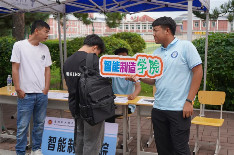 清晨,阳光透过树叶的缝隙,洒在校园的每一个角落。校园内,彩旗飘扬,横幅高挂,欢迎新生的标语随处可见,洋溢着浓厚的迎新氛围。迎新志愿者身着统一服装,面带微笑,热情地为新生及家长提供指引和帮助。校园内外到处可以感受到师生的热情、工作的细致、服务的暖心。学校安排了家长休息区,让一路奔波劳顿的家长们可以静心休息;校园内竖立起巨大的用新生姓名组成的“欢迎新同学”背景墙,上面写着每一个新生的姓名,代表着新生同学从此拥有崭新的名字——“吉职人”。