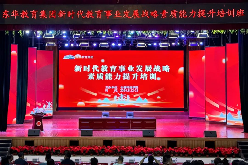 (记者 杨晓明)8月22日,东华教育集团举行新时代教育事业发展战略素质能力提升培训会,学校领导和各学院党总支书记(副书记)、院长(副院长)、职能处室负责人在长春科技学院参加线下会议,其余教职员工在三楼学术报告厅参加线上培训。副董事长张津格出席开班式并作动员讲话。长春科技学院校长栾立明主持开班仪式。培训班由长春科技学院主办,为时两天,采取线上线下相结合方式进行。开班仪式在雄壮的中华人民共和国国歌声中开始。