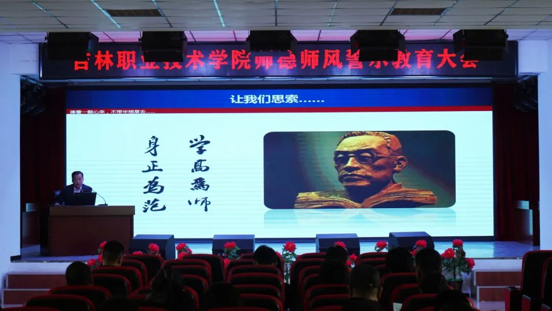 李贵河以“学高为师,身正为范”引题,从教师师德师风解读、师德师风建设缺失的原因分析、违反师德师风的典型现象、师德师风法规建设情况、我校师德师风建设工作体系几个方面,结合具体案例进行了深入分析,警示全体教师以案为鉴,从反面教材中吸取经验教训,做到知敬畏、明职责、尽责任、守底线,将师德规范内化于心、外化于行。