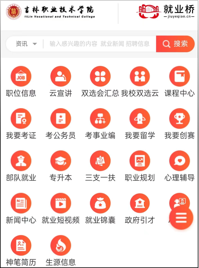 “就业桥”是为毕业生打造的综合类就业服务平台,汇聚了众多优质企业资源,信息定期更新,给毕业生提供更加广阔的择业空间。平台支持PC端和微信端浏览,内容涵盖“我要找工作”“我要考证”“我要考公务员”“我要考事业编”“我要留学”“我要创赛”“我要参军就业”“我要专升本”“新闻中心”九大内容模块,平台界面简洁明了,操作简单易懂。