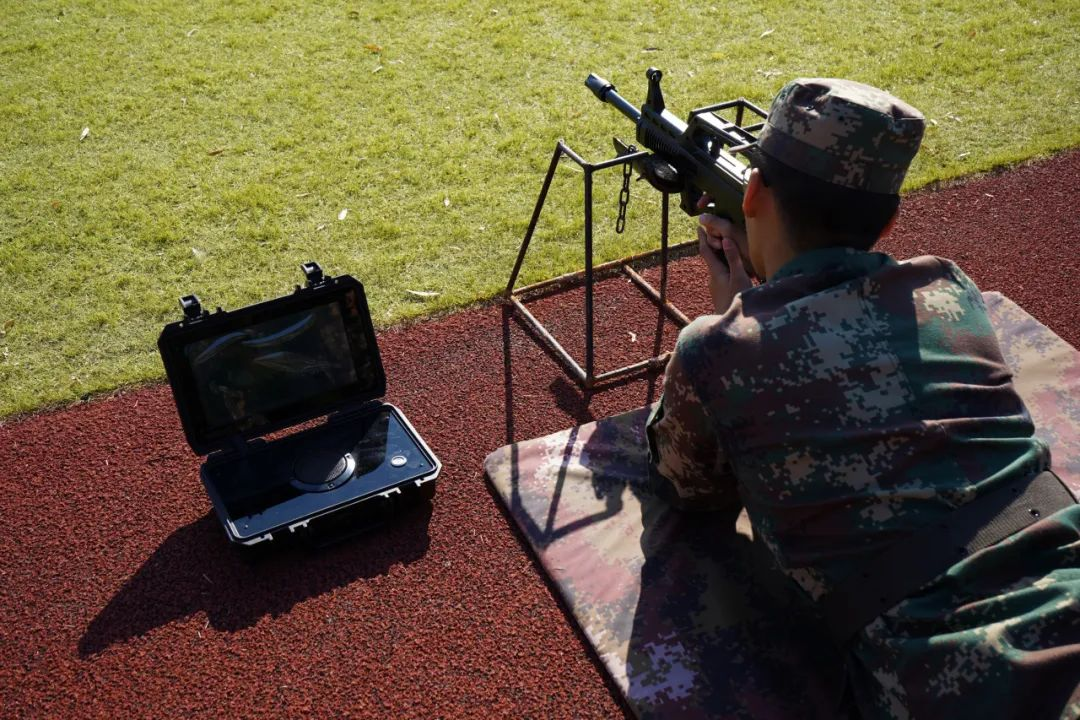 大学生预备役连新成员20人一组,分组射击,五发练习,五发实战,这是一场技术与细心的角逐。场内模拟枪声此起彼伏,场外更是传来阵阵惊呼,宣布成绩的声音刺激着每位在场成员的听觉神经。激光射击、自动记录、影像逼真、随时调试……这是科技的力量,是信息化的特色活动。