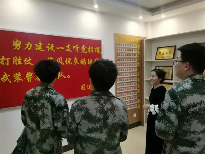 为贯彻落实习近平总书记关于“推动国防和军队现代化建设、提高青年学生国防意识和综合素质提供有力支撑”的重要指示精神,6月16日,我校医药学院组织21级、22级学生代表走进武警中队。在武警中队中队长的陪同下,学校党委宣传部部长段世娇、医药学院党总支副书记尹成龙及全体辅导员一行参观了荣誉室、日常训练区。
