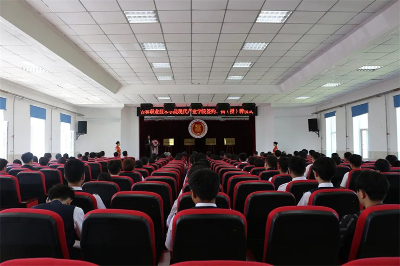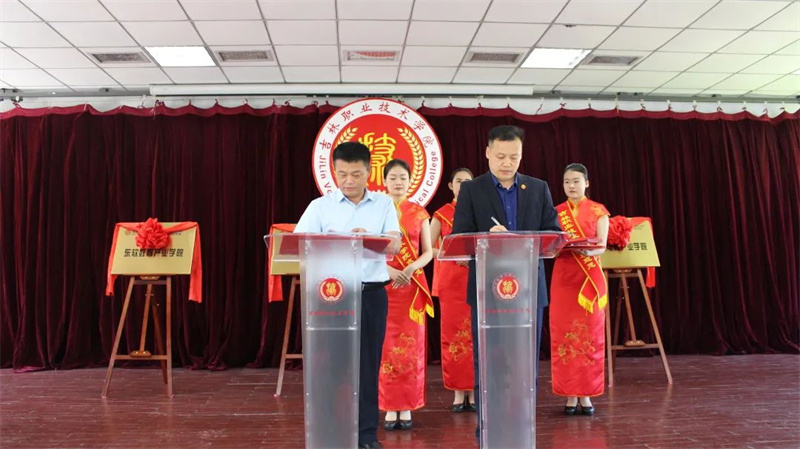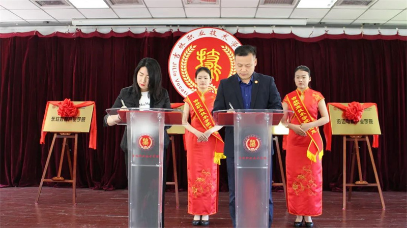 授牌仪式上,开云手机web版登录入口纪委书记、学工部部长李贵河代表学校与各企业代表签订了校企合作框架协议;龙井市市委常委、副市长徐之光,东软教育科技集团有限公司职业教育事业部项目经理管玉明,延边州人力资源和社会保障局副局长李铁锡,理想汽车校企合作经理施扬分别为东软数智产业学院、理想智造产业学院揭牌;延边州工业和信息化局四级调研员吴限良,京东物流吉林省地区总经理贺宇,省教育厅驻开云手机web版登录入口督导专员、党委书记崔振宇,延边朝鲜族自治州电子商务研究院理事长、西开电商有限公司总经理尹勇勋分别为沿边电商产业学院、京东数字乡村产业学院揭牌。随后,开云手机web版登录入口校长柳森向合作企业授牌。