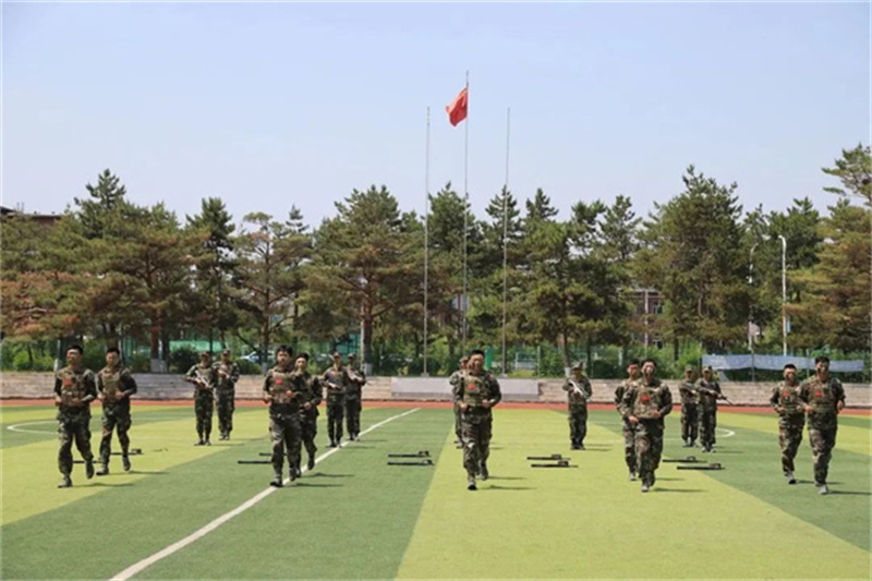 典礼结束后,与会领导共同观看了我校大学生预备连汇报表演。