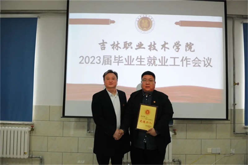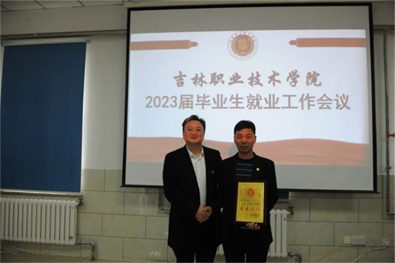廉政彪宣读2022年度高校毕业生就业创业工作先进集体及先进个人表彰决定,授予我校龙井市“2022年度高校毕业生就业创业工作先进集体”称号,授予吴政珉、董婧妍、刘刚、兰春伟龙井市“2022年度高校毕业生就业创业工作先进个人”称号。由廉政彪为获奖集体、个人颁奖。