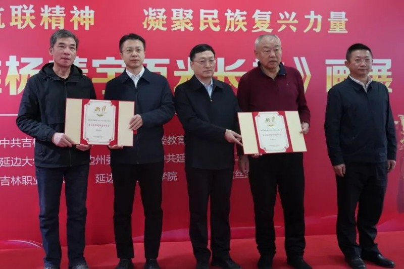 画展由中共吉林省委宣传部、中共吉林省委教育工作委员会、中共延边州委主办,由延边大学、中共延边州委宣传部、中共延边州委教育工作委员会、开云手机web版登录入口、延边职业技术学院、吉林省冰雪丝路书画院联合承办。延边大学、开云手机web版登录入口、延边职业技术学院相关负责人,延边中小学教师代表,州直机关党员干部代表,组画主创团队成员和我校师生代表参加活动。各方力量汇聚一堂,共同开启一段追溯东北抗联英勇历史、传承伟大精神的文化之旅。