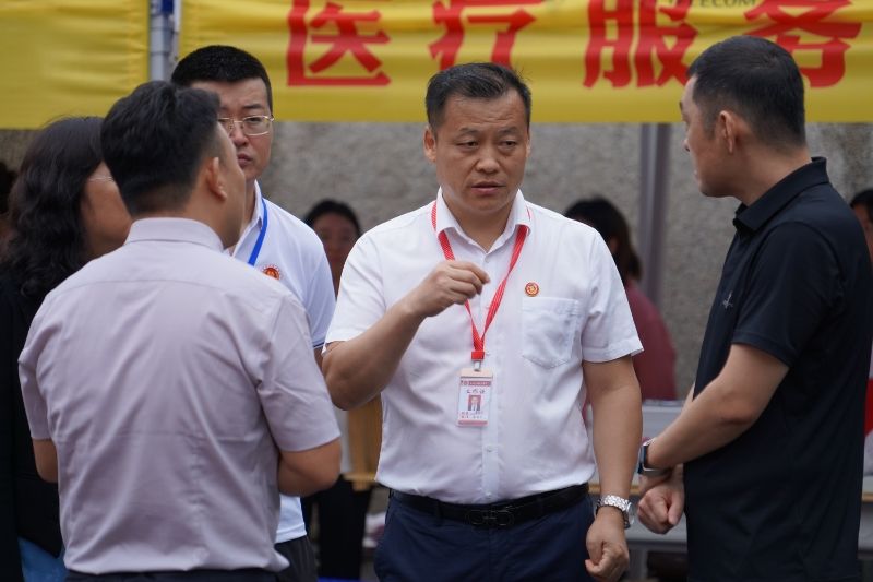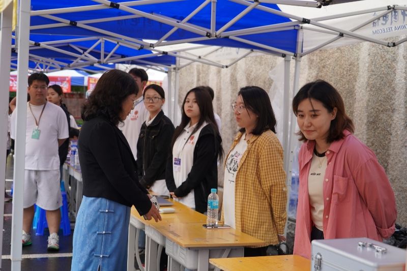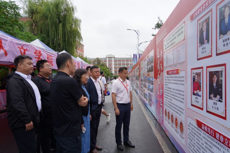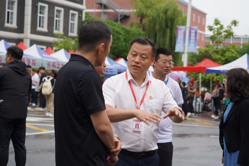 在新生报到处,校领导与新生及家长攀谈,仔细询问他们从哪里来、交通是否便利、报到流程是否顺利,同时亲切地为新生们介绍校园的基本情况,包括教学设施、生活服务、社团活动等方面内容,缓解新生初入校园的陌生感与紧张感。