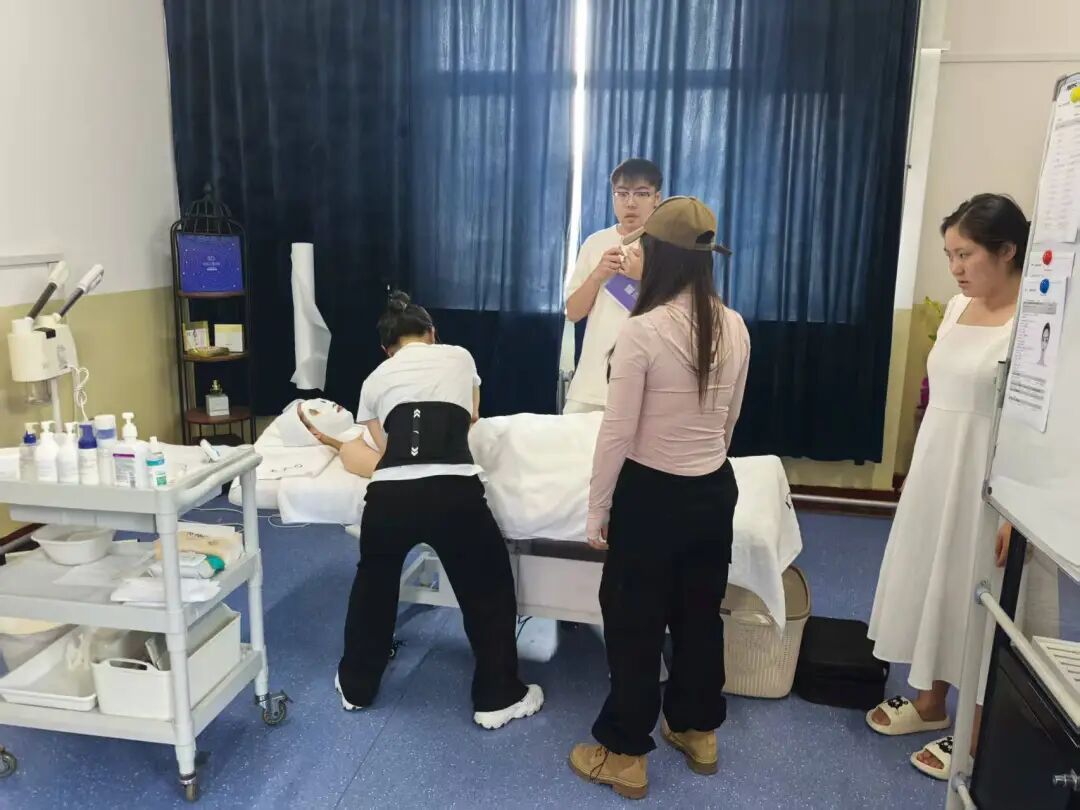 训练计划精准到小时,选手每日从 8 时训练至 24 时,仅保留 6 小时休息时间,通过反复练习打磨操作细节,形成肌肉记忆,力求实现技术零失误。同时,2025 级医美专业新生利用军训间隙参与训练,学习专业技能;2024 级全体医美学生则全暑假 24 小时配合,通过担任模特、研读技术文件等方式,为成为第二梯队选手积累经验,形成 “老带新、共奋进” 的备战氛围。