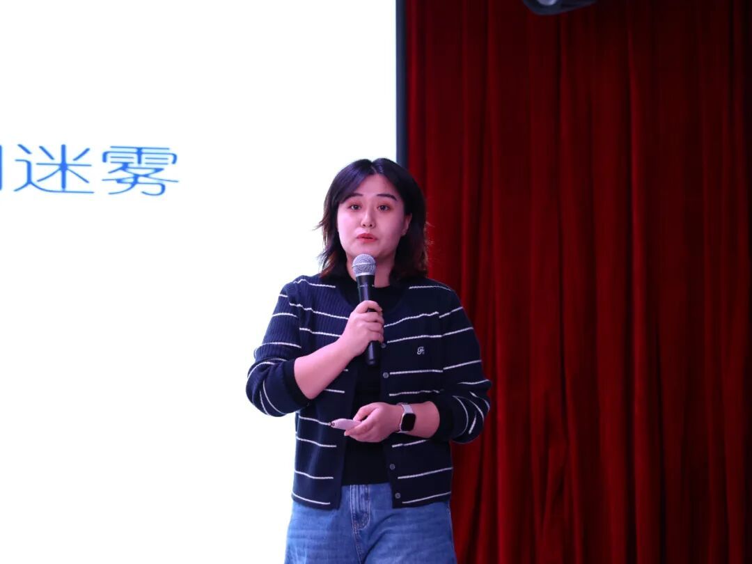 王妍老师带来 “AI 赋能教学:从工具到思维” 的主题分享。她结合当下教育数字化转型趋势,介绍了 AI 技术在教学设计、资源制作、学情分析等环节的实用工具与应用场景,并通过案例演示,展示了如何利用 AI 优化教学流程、提升教学效率。王妍老师提出,AI 赋能教学不仅是工具的更新,更是教学思维的升级,鼓励教师主动探索 AI 与学科教学的深度融合,打造更具个性化、互动性的课堂。