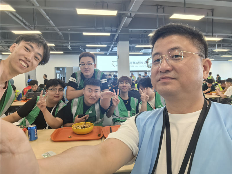 为了解实习生的生活保障情况,金文日和同学们一起到公司食堂进餐,对同学们反映的问题,他及时和公司相关部门协调沟通,第一时间解决同学们遇到的生活困难。